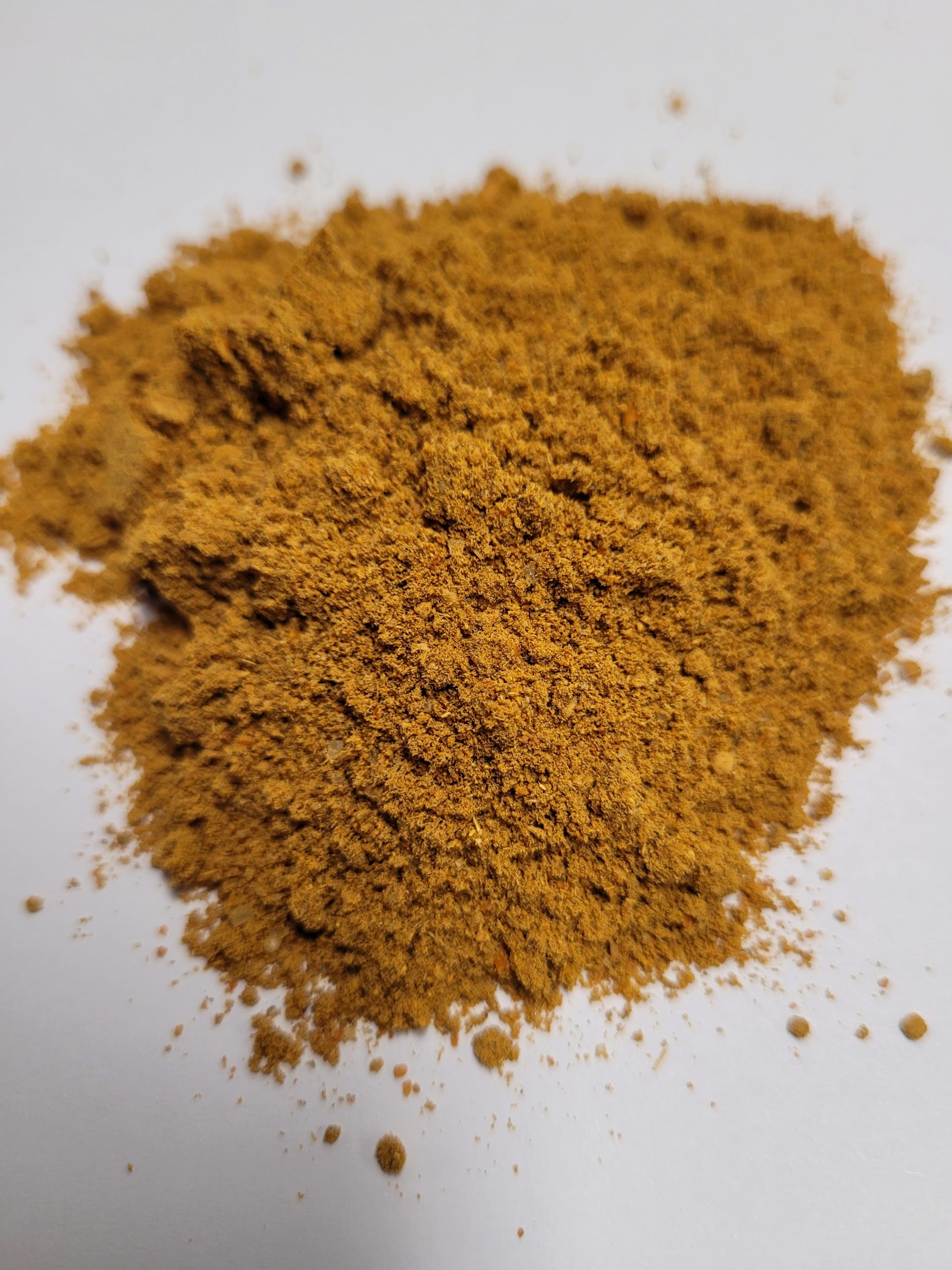 Composition : Coriandre, cumin, moutarde jaune, fenouil, cannelle, curcuma, sucre de canne, paprika, piment de Cayenne, ail, poivre…
