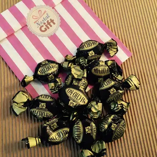 – Emballage : Livré dans un sachet bonbon rétro (avec les autres bonbons de votre commande).