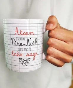 Offrez un cadeau de Noël qui dure pour l’Atsem de votre enfant. Sur ce mug, il est écrit ” ATSEM j’ai dit au Père Noël que tu avais été très sage “sur l’avant de la tasse. Avec sa contenance de 320ml, cette tasse est idéale pour une pause café ou un chocolat chaud lors de ses moments de détente.