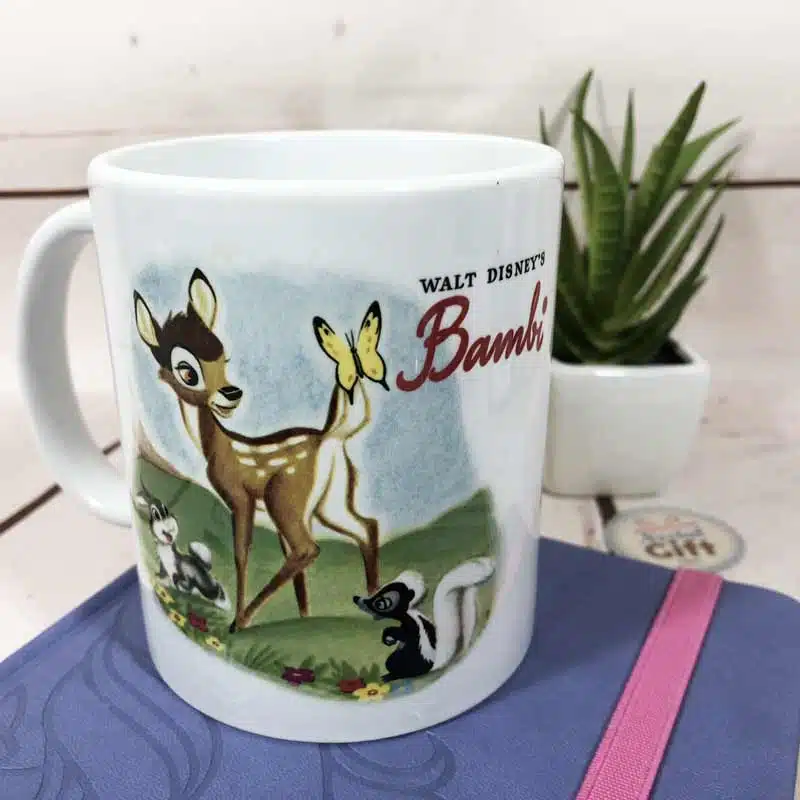 Retrouvez le magnifique dessin animé de Disney Bambi dans ce mug 100% vintage ! Découvrez ou redécouvrez les amis de Bambi, Pampan et Fleur dans ce mug au dessin très rétro qui vous fera forcément craquer !
