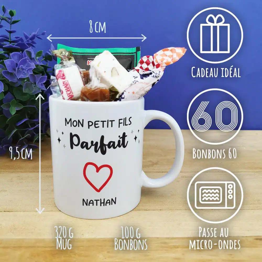 Tasse avec bonbons des années 1960 Mon petit fils parfait – cadeau personnalisé