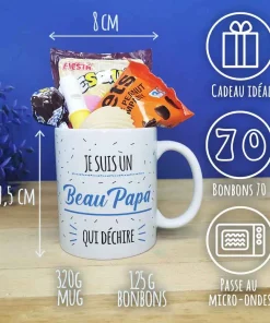 Offrez un cadeau original et pratique l’anniversaire ou le Noël de votre proche avec notre tasse, arborant “Je suis un Beau-papa qui déchire” sur l’avant et l’arrière de la tasse en céramique de qualité supérieure. Avec sa contenance de 320 ml, cette tasse pleine de bonbons est idéale pour savourer votre boisson préférée lors de moments de détente.