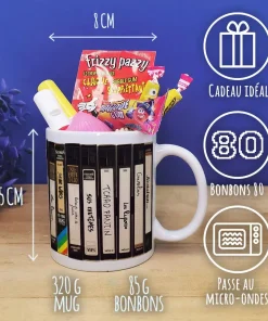 Découvrez ce cadeau, le mug bonbon 80 de la collection “VHS 80”. C’est le cadeau rétro pour la fête des pères ou la fête des mères. Avec son design rétro où l’on peut retrouver des film cultes des années 80, et sa qualité exceptionnelle, il fera plaisir à coup sûr. Avec sa contenance de 320ml, cette tasse est idéale pour savourer votre boisson préférée lors de vos moments de détente.
