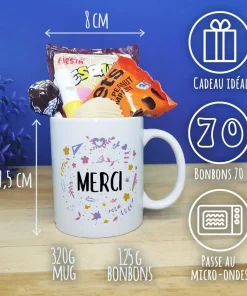 Emballage : Livré dans une boite en carton avec une étiquette reprenant le design du mug.