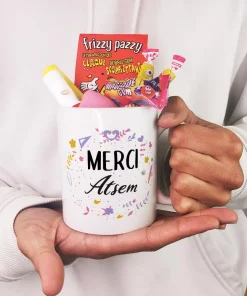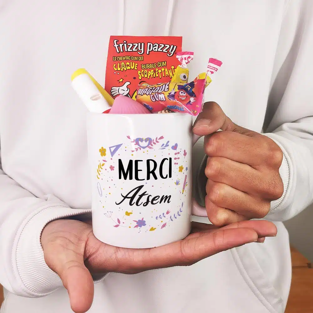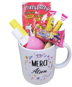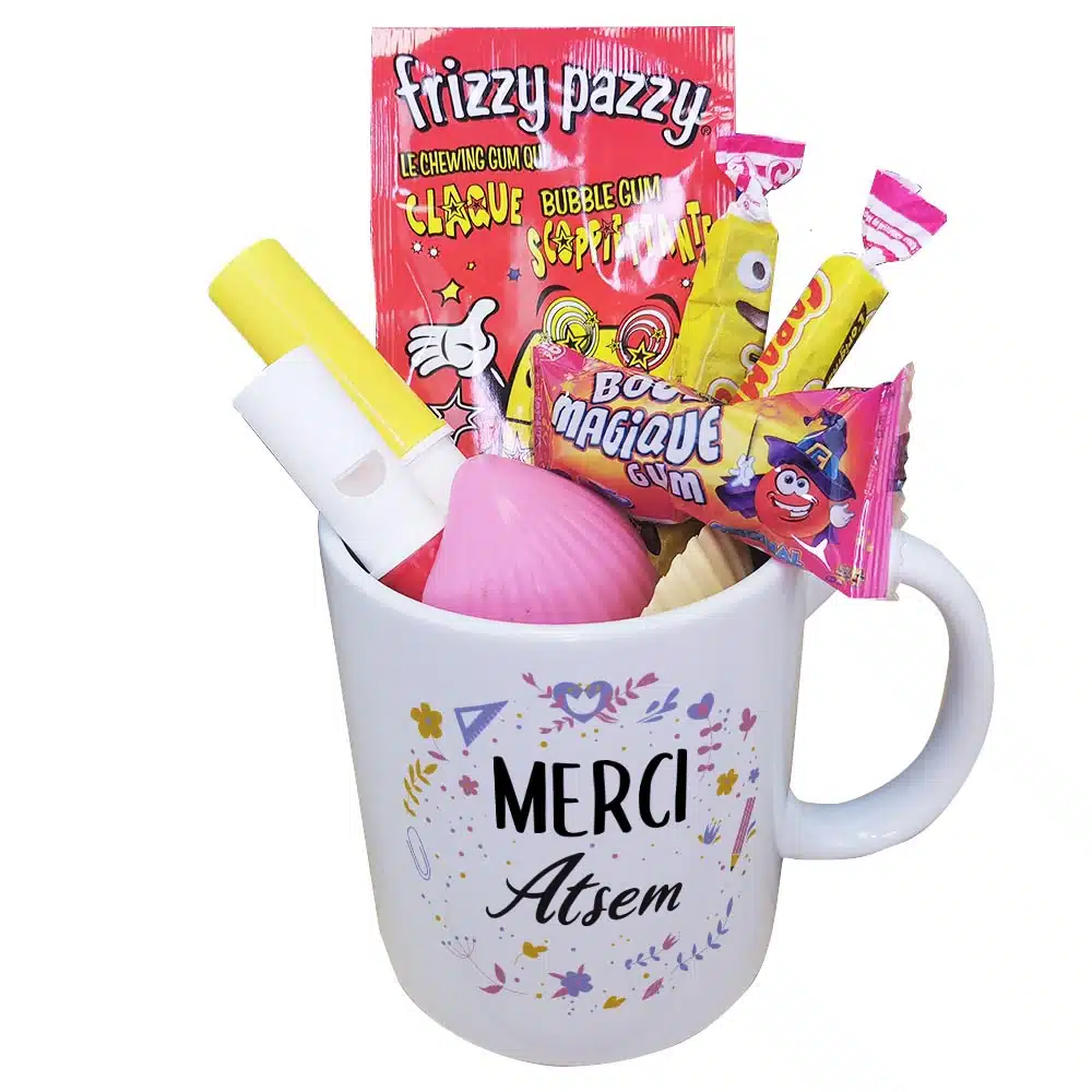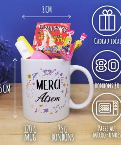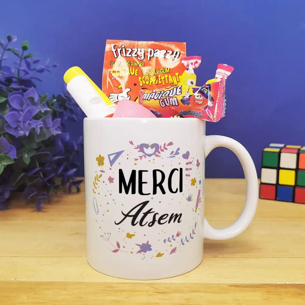 Tasse avec bonbons des années 1980 -“Merci Atsem”