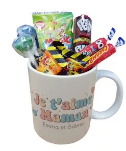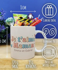Tasse avec bonbons des années 1990 “Je t’aime maman”- cadeau personnalisable