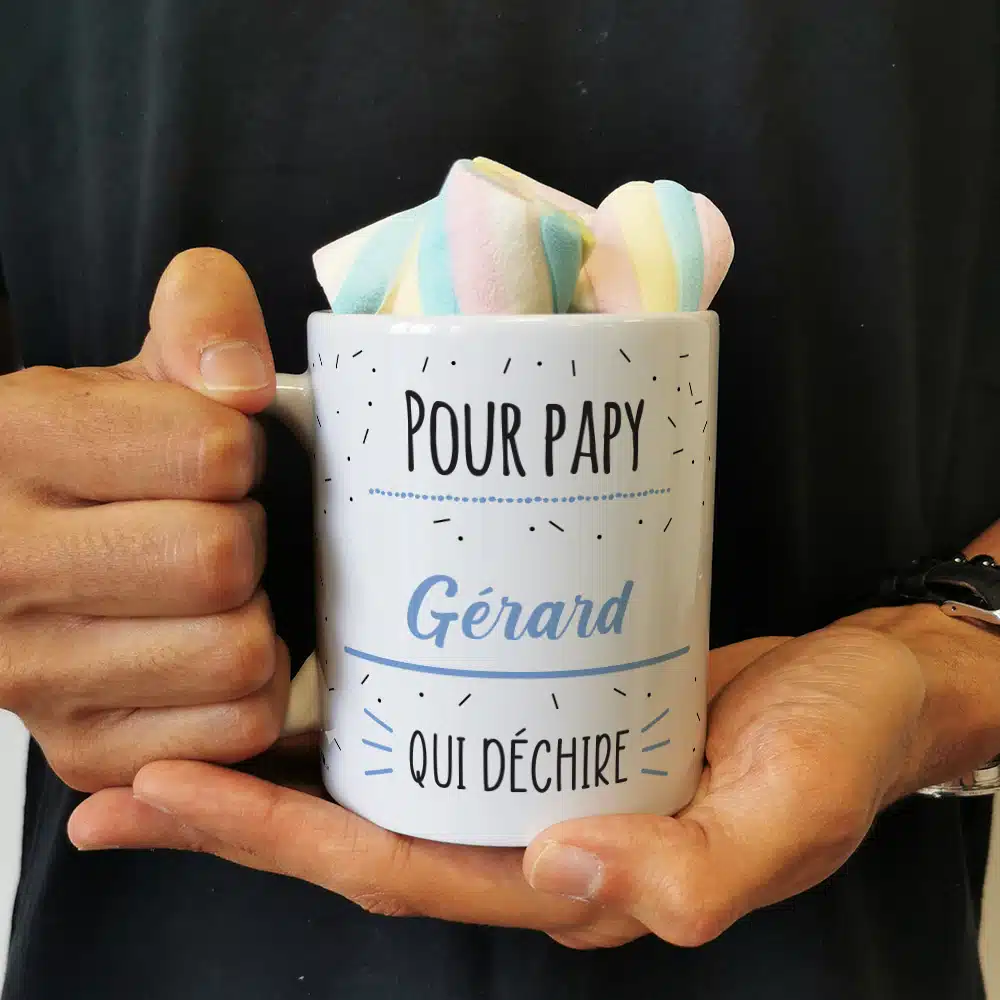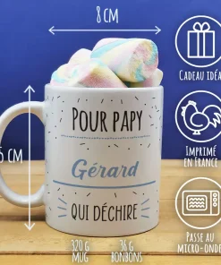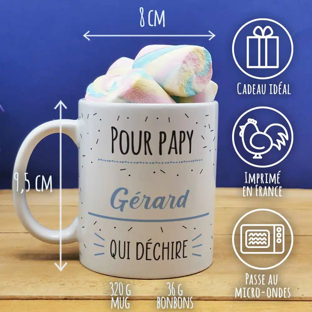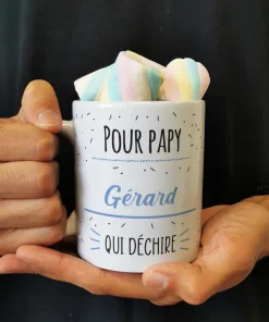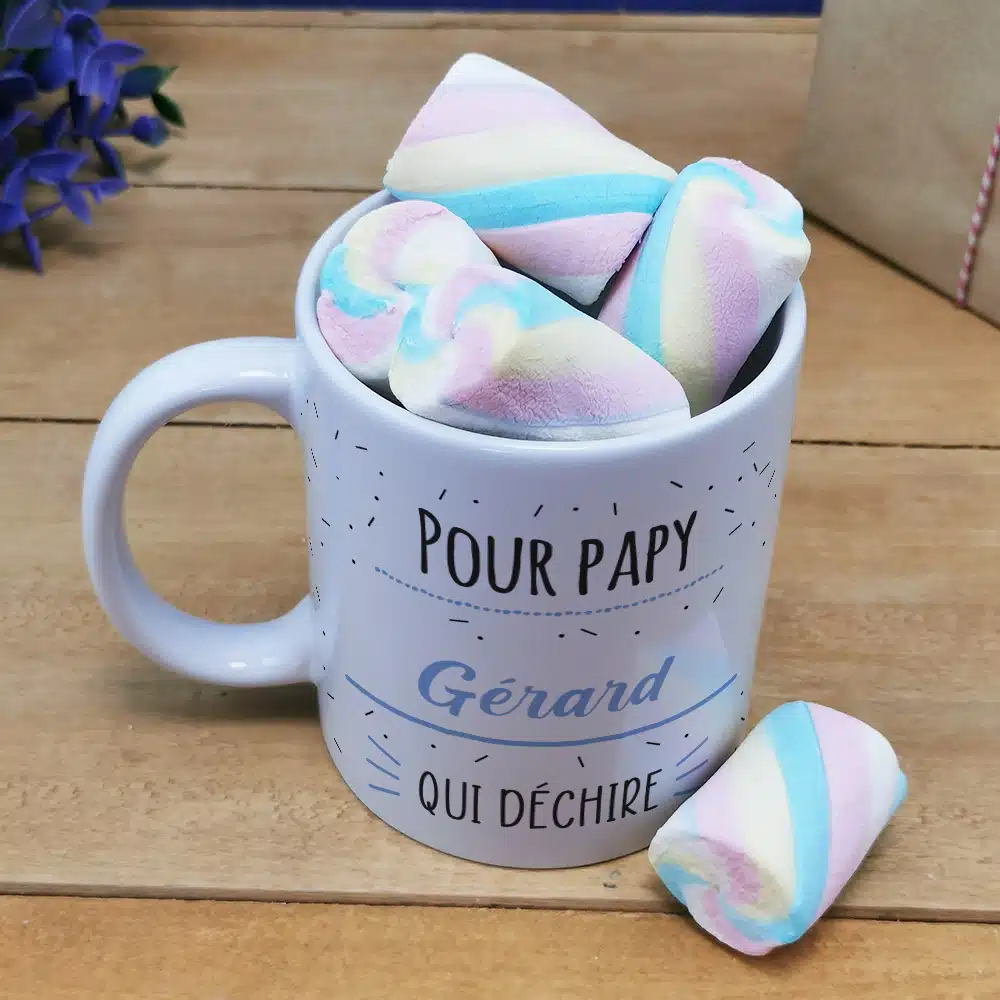 Mug “Pour papy qui Déchire” et ses guimauves torsade x 5 – Cadeau personnalisé