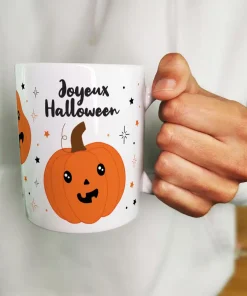 Offrez un cadeau pour halloween qui reste ! Sur ce mug, il est écrit Joyeux Halloween sur l’avant de la tasse. Avec sa contenance de 320ml, cette tasse est idéale pour une pause café ou un chocolat chaud lors de ses moments de détente.