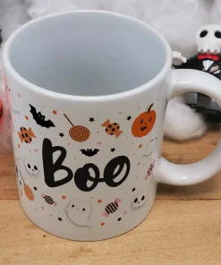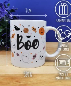 Offrez un cadeau pour halloween qui reste ! Sur ce mug, il est écrit Boo sur l’avant de la tasse. Avec sa contenance de 320ml, cette tasse est idéale pour une pause café ou un chocolat chaud lors de ses moments de détente.