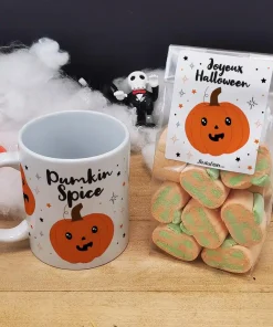Sachet de 10 citrouilles en guimauve dans un mug au joli design Pumkin Spice