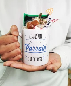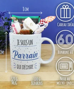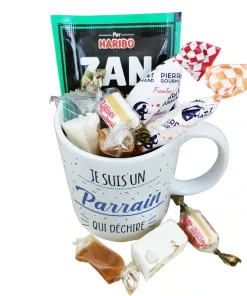 MUG “Je suis un parrain qui déchire ” rempli de bonbons rétro 60- Cadeau Parrain