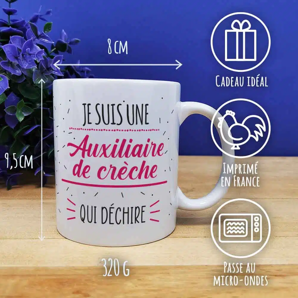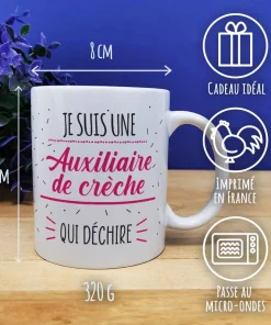 Tasse Qui déchire – Cadeau pour l’Auxiliaire de crèche, parfait pour la fin de l’année scolaire
