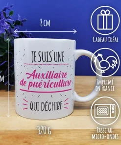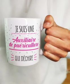 Mug “je suis une auxiliaire de puériculture qui déchire” – Cadeau crèche