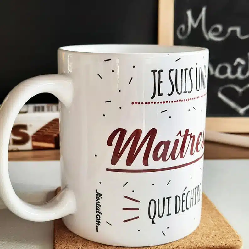 Faites un beau cadeau pour remercier la maîtresse de vos enfants avec ce magnifique mug “Je suis une maîtresse qui déchire” et son design unique!