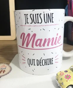 Faites un beau cadeau à votre mamie avec ce magnifique mug “Je suis un mamie qui déchire” et son design unique!