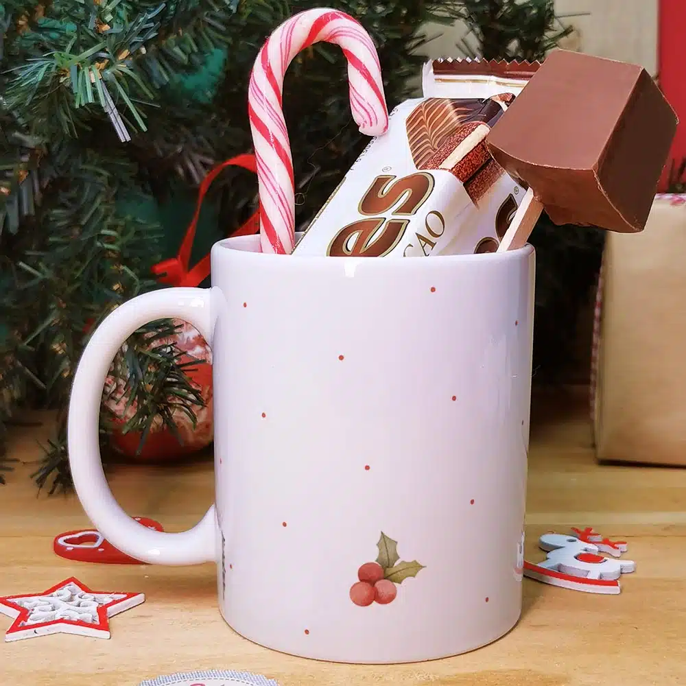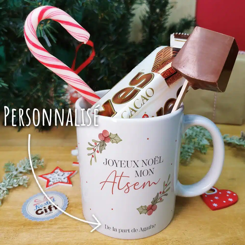 Mug “Joyeux Noël mon Atsem” et ses chocolats rétro – – cadeau personnalisé