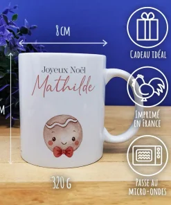 Mug “Joyeux Noël ” personnalisé – Pain d’épice – Cadeau pour Noël