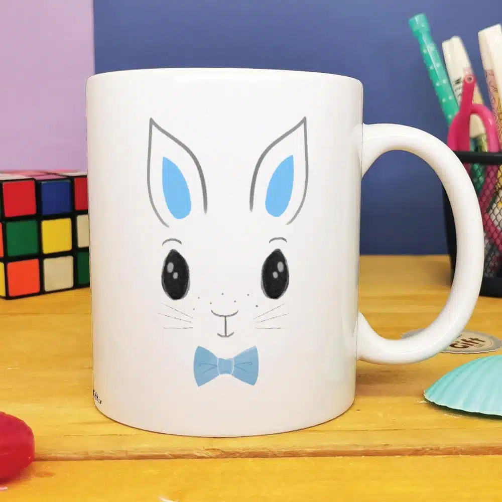 Super ! Une idée de cadeau trop mignonne pour célébrer pâques avec ce mug et son super beau lapin bleu ! Un cadeau qui fera sensation ! Existe aussi en version personnalisée.
