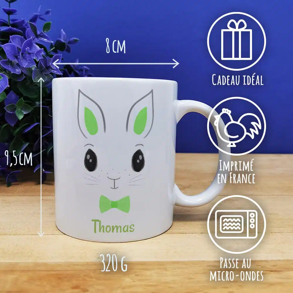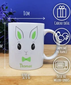 Super ! Une idée de cadeau trop mignonne pour célébrer pâques avec ce mug et son super beau lapin vert ! Un cadeau qui fera sensation !
