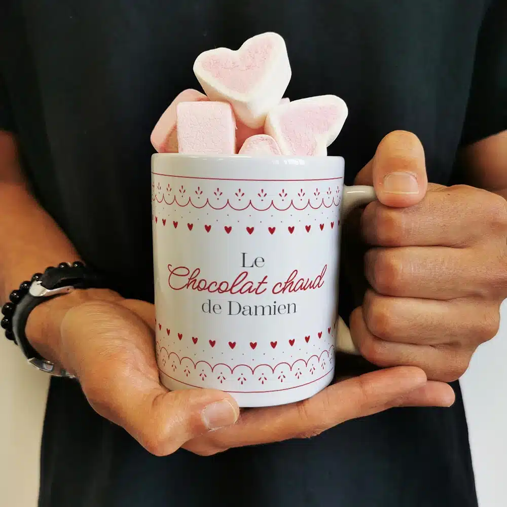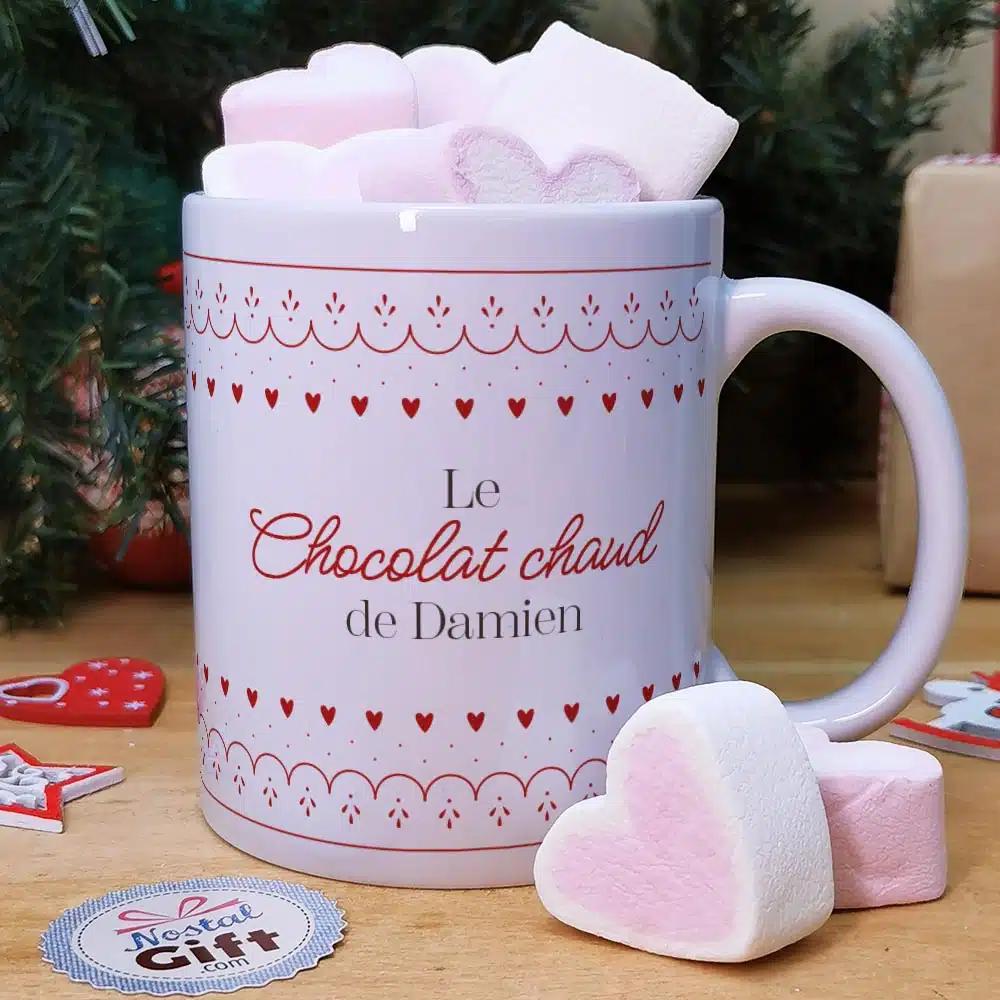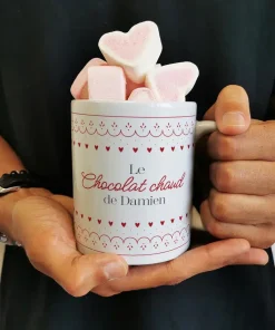 Mug “Boissons de Noël” et ses guimauves coeurs x10 – cadeau Mug – cadeau personnalisé