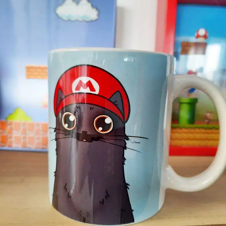 Nostalgift vous présente sa collection originale de mug chaton déguisé. Ici il s’agit d’un beau mug bleu décoré d’un petit chaton Mario Cat tout mignon portant une casquette. Sympa non ?! Il sera un cadeau original à offrir à vos proches !