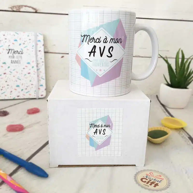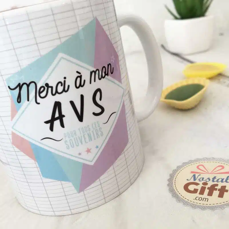 Dites merci à l’AVS de votre enfant avec ce magnifique mug au design des enfants et la mention “Merci à mon AVS pour tous ces souvenirs” !