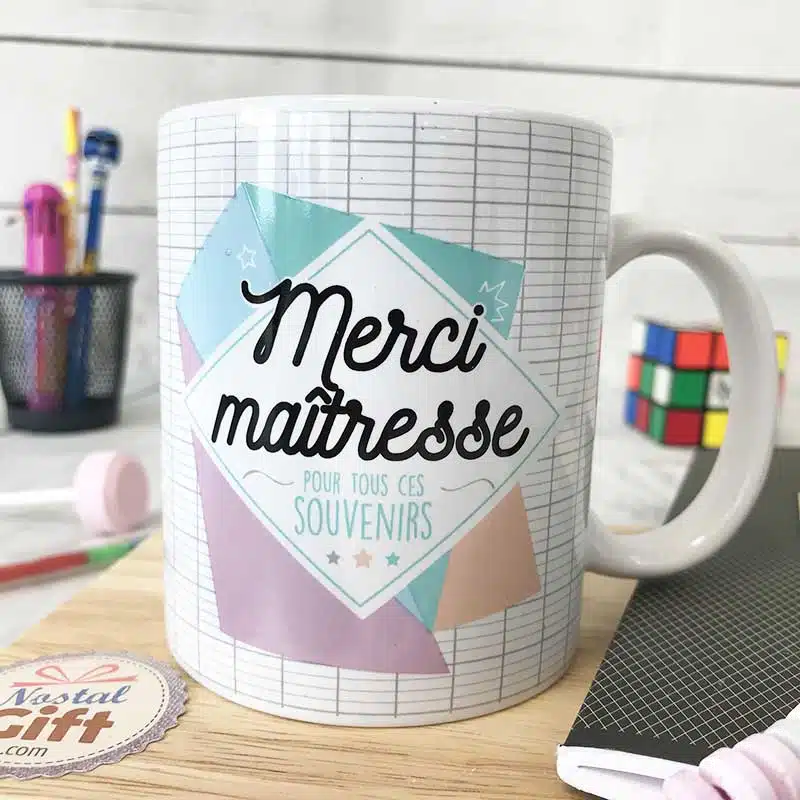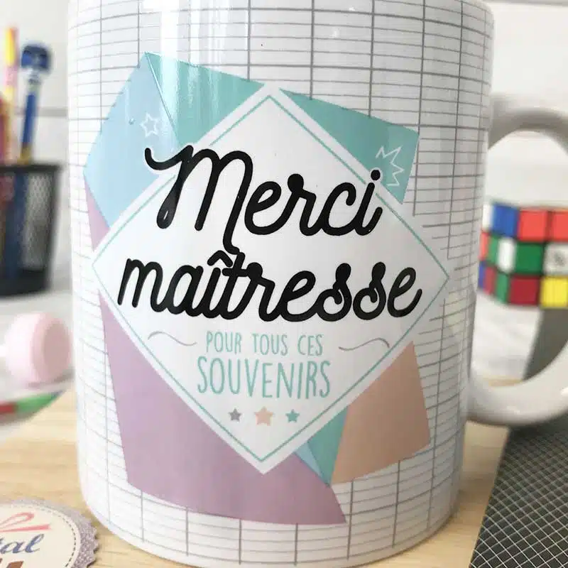 Dites merci à la maîtresse de vos enfants avec ce magnifique mug très moderne !
