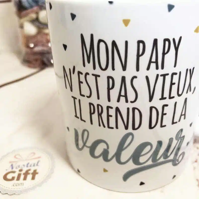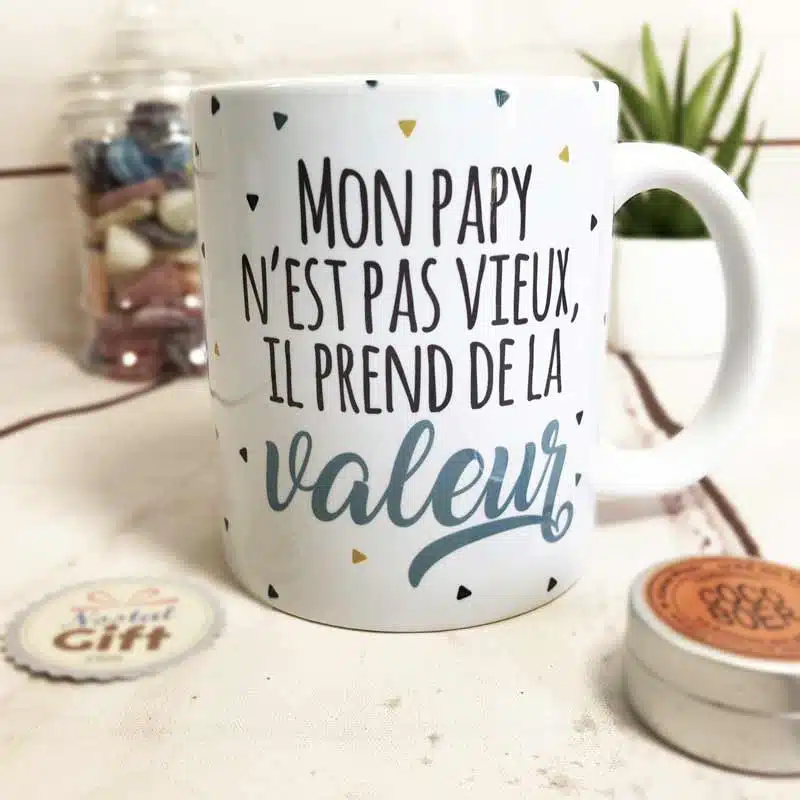 Pour une idée cadeau pour votre Papy chéri, voici un mug au design vintage qui lui fera chaud au cœur…et aux mains ! Tout comme un bon vin, votre grand-père s’améliore avec l’âge, et vous pensez que ce mug lui conviendrait parfaitement. Pour affirmer ces propos ou pour le rassurer, offrez-lui ce mug unique.