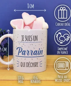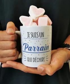 Mug “Parrain qui déchire” et ses guimauves coeurs x10 – cadeau Mug