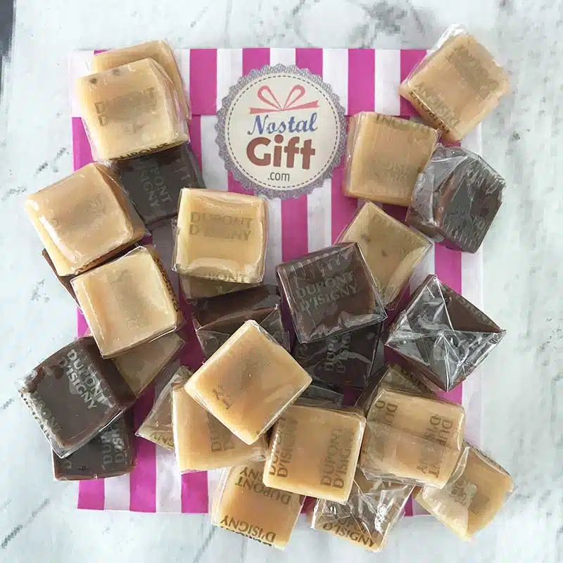– Contenance : 320 ml + 30 bonbons au caramel Dupont D’Isigny (20 caramels à la noisette et 10 caramels au chocolat)