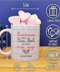 – Inscription : “Maîtresse j’ai dit au Père Noël que tu avais été très sage”
