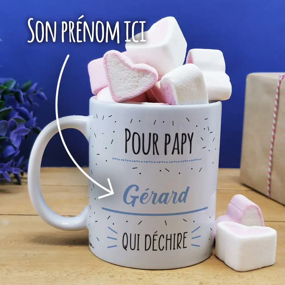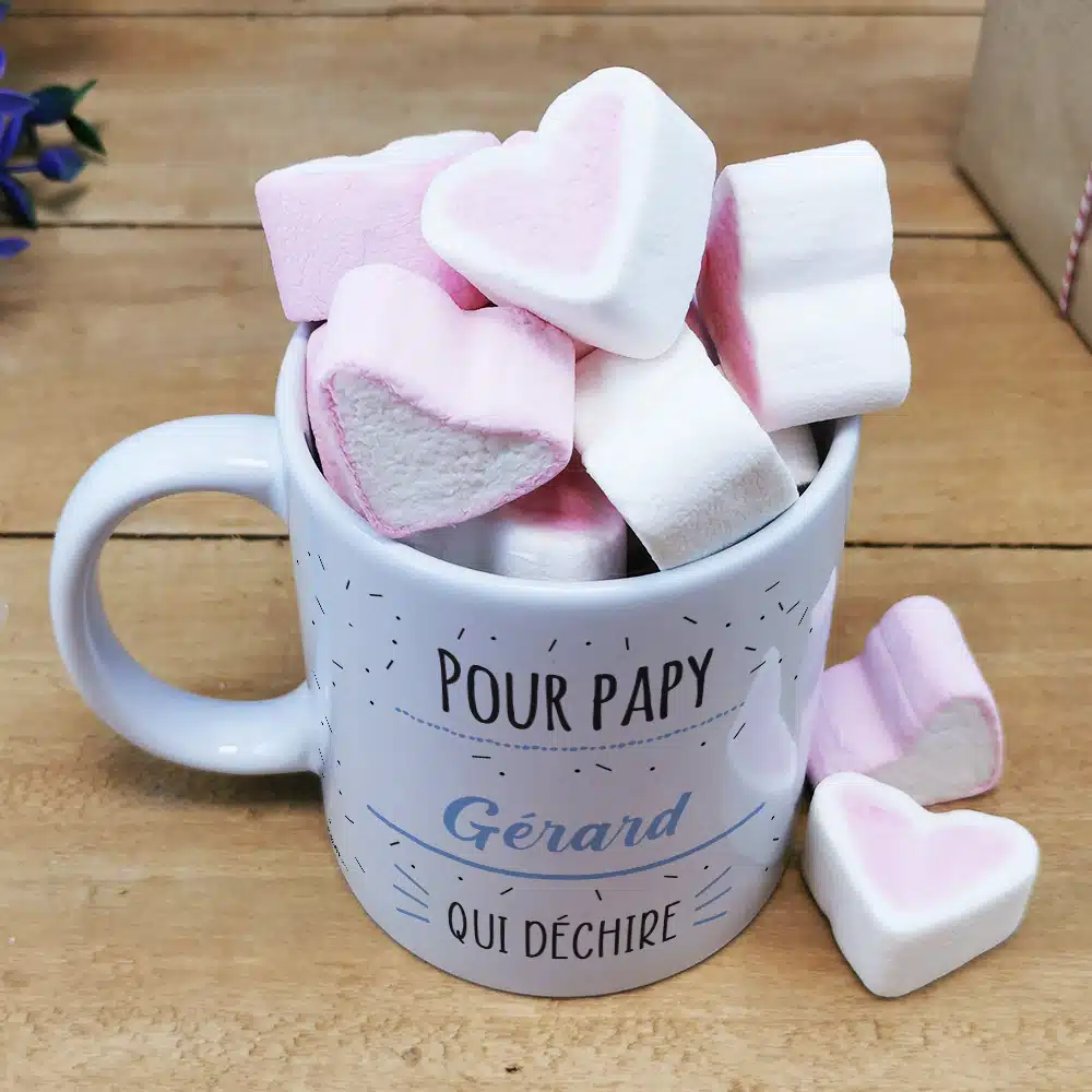 Mug “Qui Déchire” et ses guimauves coeurs x10 – Cadeau personnalisé