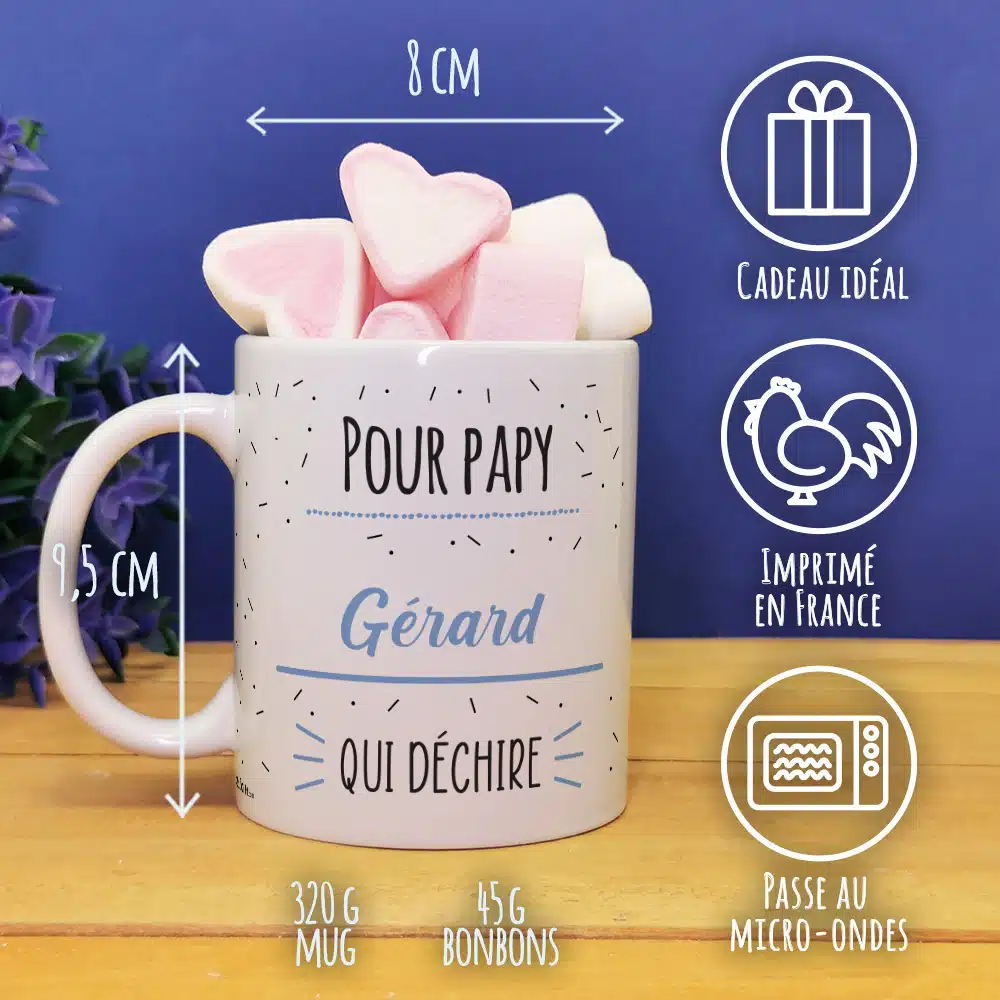 – Inscription : “Pour papy qui déchire”