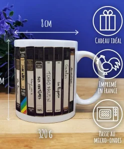 il sera parfait pour la fête des pères ou fêter un anniversaire. Sur ce mug, il est écrit les meilleurs films des années 80 au design VHS sur l’avant et l’arrière de la tasse. Avec sa contenance de 320ml, cette tasse est idéale pour une pause café ou un chocolat chaud lors de ses moments de détente.