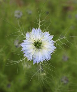 La Nigella damascena est originaire du bassin méditerranéen. Son nom fait référence à la ville de Damas, où elle était abondamment cultivée dans les jardins royaux. Connue également sous le nom de « Cheveux de Vénus » ou « Love-in-a-Mist » en anglais, cette fleur est entourée d’un feuillage léger et vaporeux qui lui donne un aspect onirique. Depuis des siècles, la Nigelle est appréciée tant pour sa beauté que pour ses graines aux usages variés.