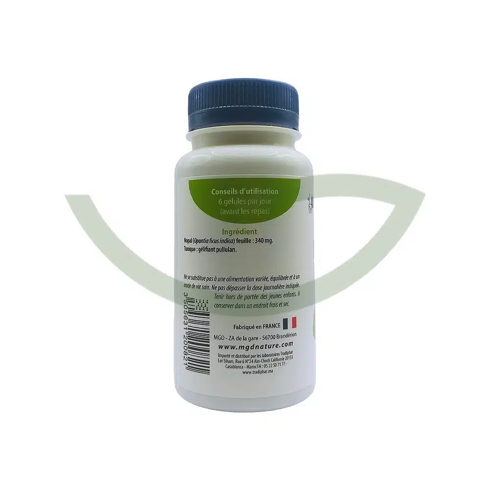 Le nopal, Opuntia ficus indica, communément appelé (poire épineuse), est une espèce de cactus de la famille des Cactaceae originaire du Mexique. Après avoir été découvert au XVIe siècle par les conquistadors espagnols, le nopal s’est implanté en Europe, autour de la Méditerranée. On le trouve aussi en Afrique du Sud, à La Réunion, en Inde et en Australie. Cultivé principalement pour la production de fruits, le nopal est naturellement riche en vitamine C. Il est également utilisé comme colorant naturel. De plus, au Mexique, il est largement utilisé en pratique traditionnelle, où les feuilles, réduites en poudre, sont utilisées pour limiter l’absorption des graisses. Le nopal est riche en fibres capables de se lier dans l’estomac avec une partie des graisses consommées dans le repas, et ainsi de les absorber. Le tout est ensuite retiré par voie naturelle. En raison de cette propriété lipophile, il favorise la perte de graisse. Le sélénium et la vitamine E aident à protéger les cellules contre le stress oxydatif.