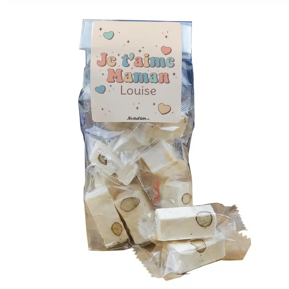 Nougat tendres x 15 – “Je t’aime Maman” – Cadeau Maman personnalisable