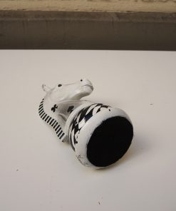 Fabriqué en résine aux tons gris, cet ornement vintage est décoré de trèfles et de piques ainsi qu’un motif à damier noirs.