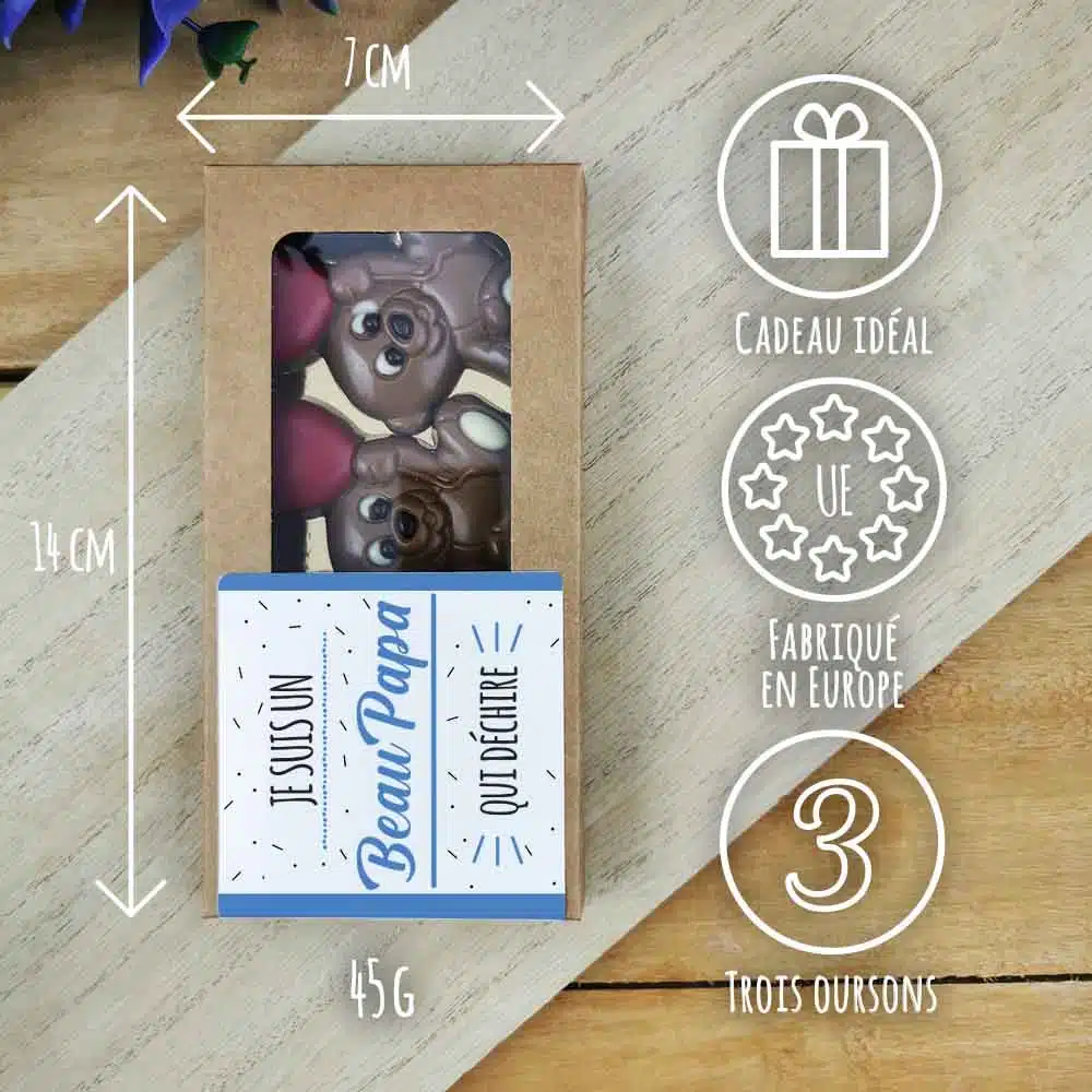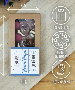 Oursons au chocolat au lait x3 “Je suis un Beau Papa qui déchire”- cadeau beau père
