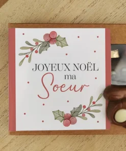 – Packaging : Boîte cartonnée avec fenêtre plastifiée et autocollant avec l’inscription Joyeux Noël ma soeur aux couleurs vert et rouge