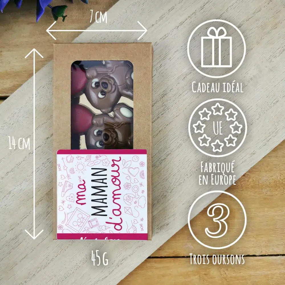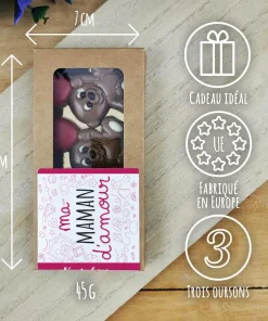Oursons “Ma maman d’amour” au chocolat au lait x 3