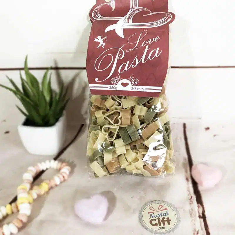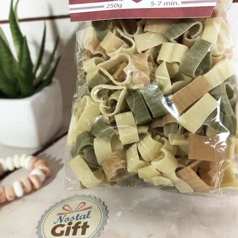 Pâtes tricolores en forme de coeur fabriquées en Italie