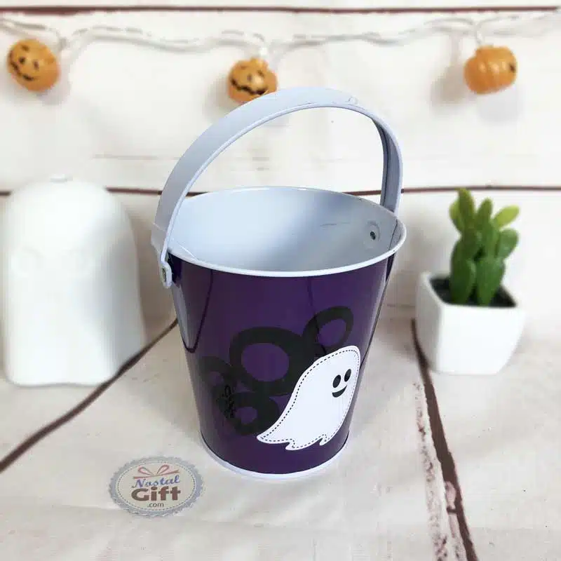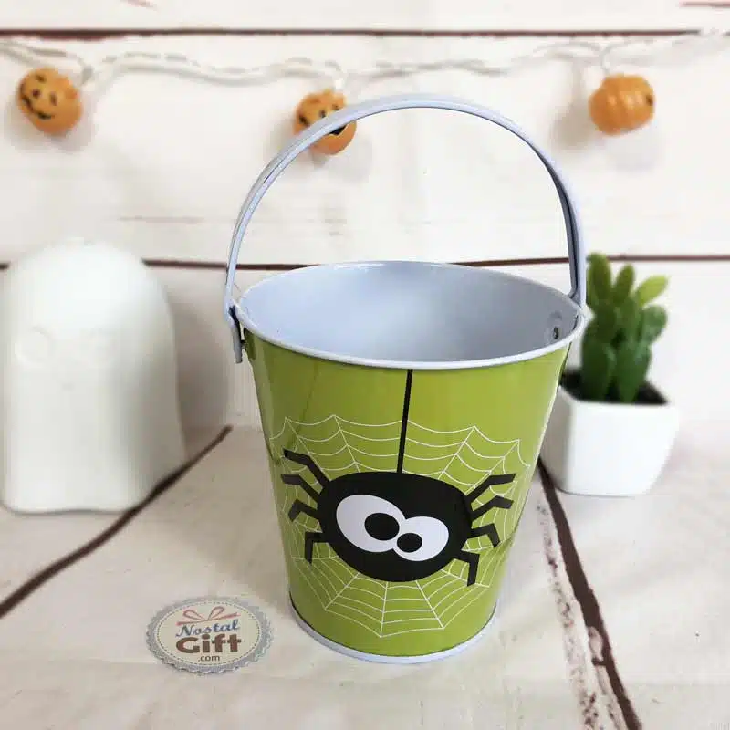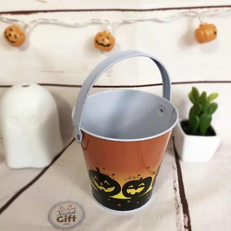 La nuit du 31 octobre, il est de coutume que les enfants se parent de leurs plus effrayants déguisements pour faire du porte à porte aux voisins et espérer obtenir des bonbons. Pour les transporter en toute tranquillité, rien ne vaut ce petit seau solide et totalement accordé au thème ! Idéal pour éviter la faute de goût avec le costume de votre enfant.