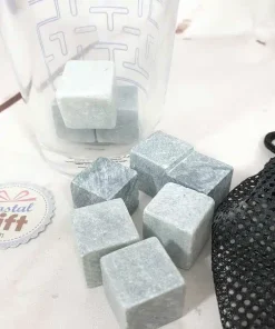 – Mode d’emploi : Avant la première utilisation, stériliser les pierres en les laissant 10 minutes dans l’eau bouillante. Ne pas nettoyer les pierres avec des détergents abrasifs ou agressifs. Nettoyer les pierres après chaque utilisation et les sécher correctement avant de les placer au congélateur. Utiliser le filet de rangement pour mettre les pierres au congélateur au moins trois heures avant utilisation. Déposer 2 à 4 pierres dans un verre, puis verser la boisson. Éviter de faire chuter les pierres dans le verre, au risque de l’endommager.