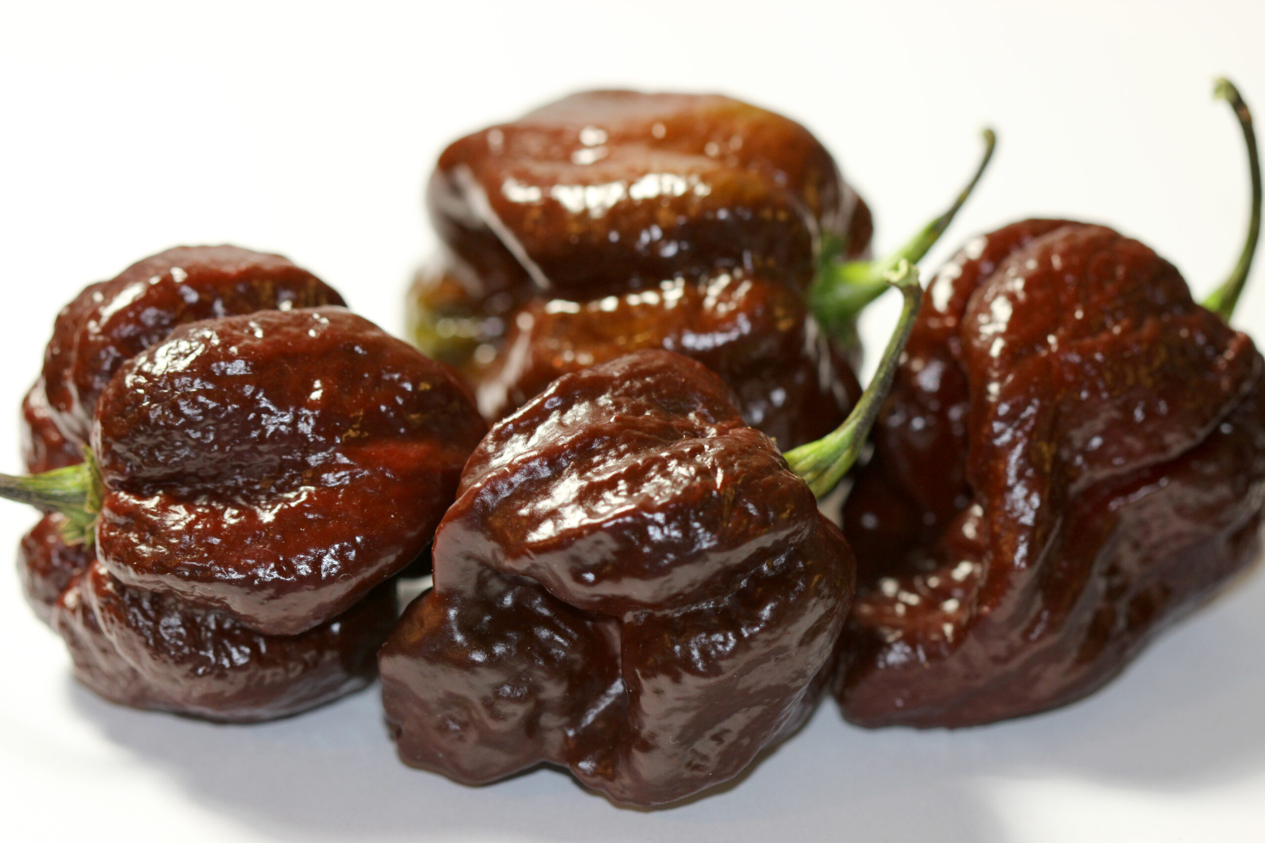 Veillez à être prudent lorsque vous le mangez cru et à porter des gants lors de la récolte, cette variété est explosive! Les poivrons, courts et trapus, mesurent environ 2 pouces de long et ont une couleur brun chocolat-rouge ridée. Les plantes sont très productives et offrent une saveur plus douce et moins acide avec des notes fumées et une belle douceur terreuse, convenant parfaitement à la réalisation de sauces chaudes et piquantes !