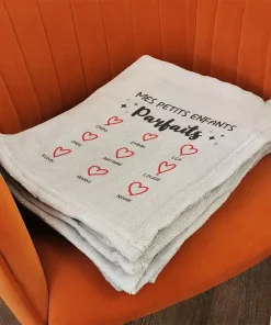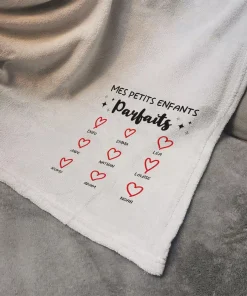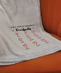Plaid doux gris clair “Mes petits enfants parfaits” – De 2 à 12 prénoms – Cadeau mamie, papy personnalisé