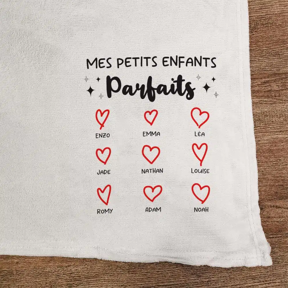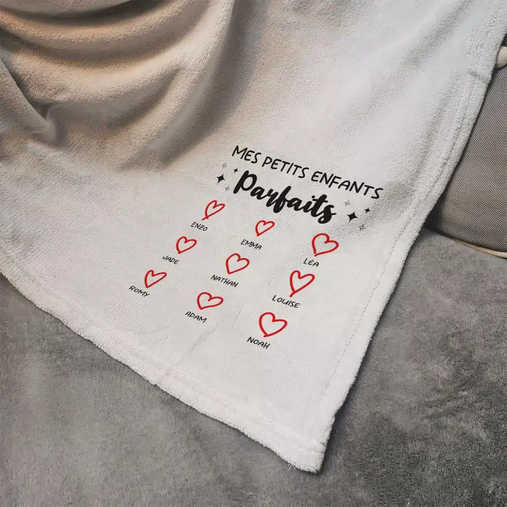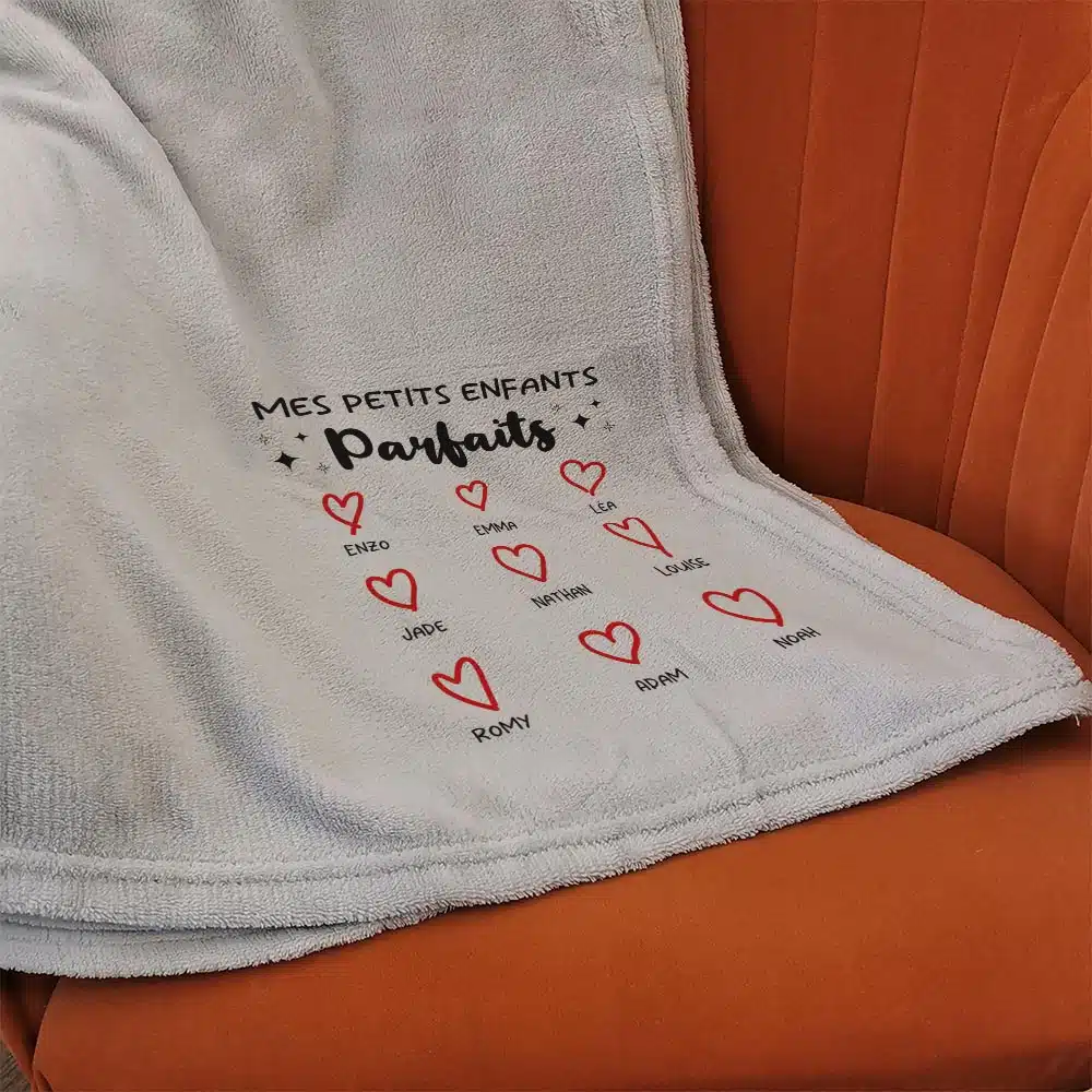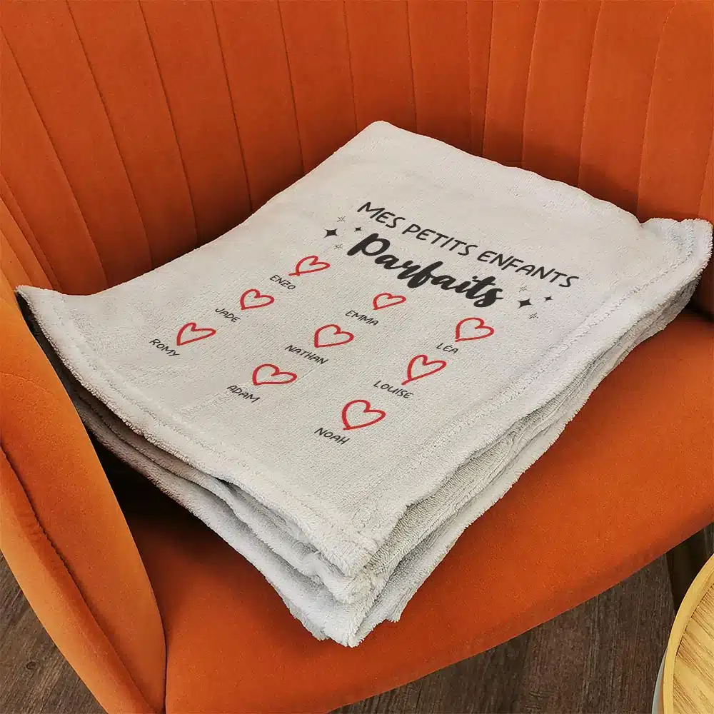 Pour être bien au chaud chez soi, rien ne vaut ce plaid gris clair tout doux ! Avec sa personnalisation “Mes petits enfants parfais” et la liste des prénoms des petits-enfants, vous ferez forcément plaisir à papy ou mamie. Devant la télé ou tout simplement sur son fauteuil, la personne à qui vous l’offrez aura le sentiment d’être sur un petit nuage grâce à sa douceur. C’est aussi un cadeau idéal pour les grands-parents lors d’un anniversaire ou la fête des grands-mères ou fête des grands-pères !