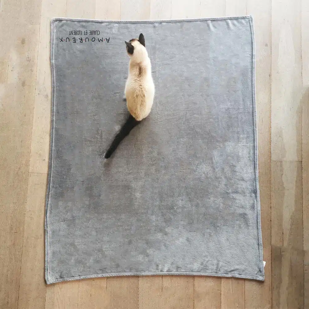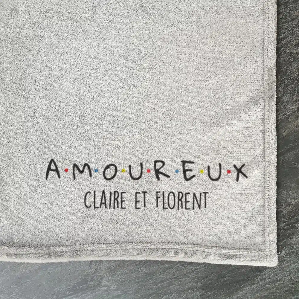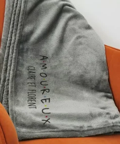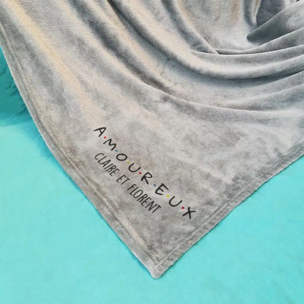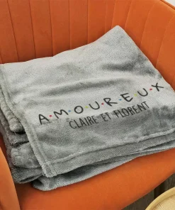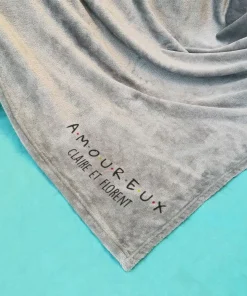Plaid doux gris personnalisé Amoureux – 125×150 cm – Cadeau saint valentin