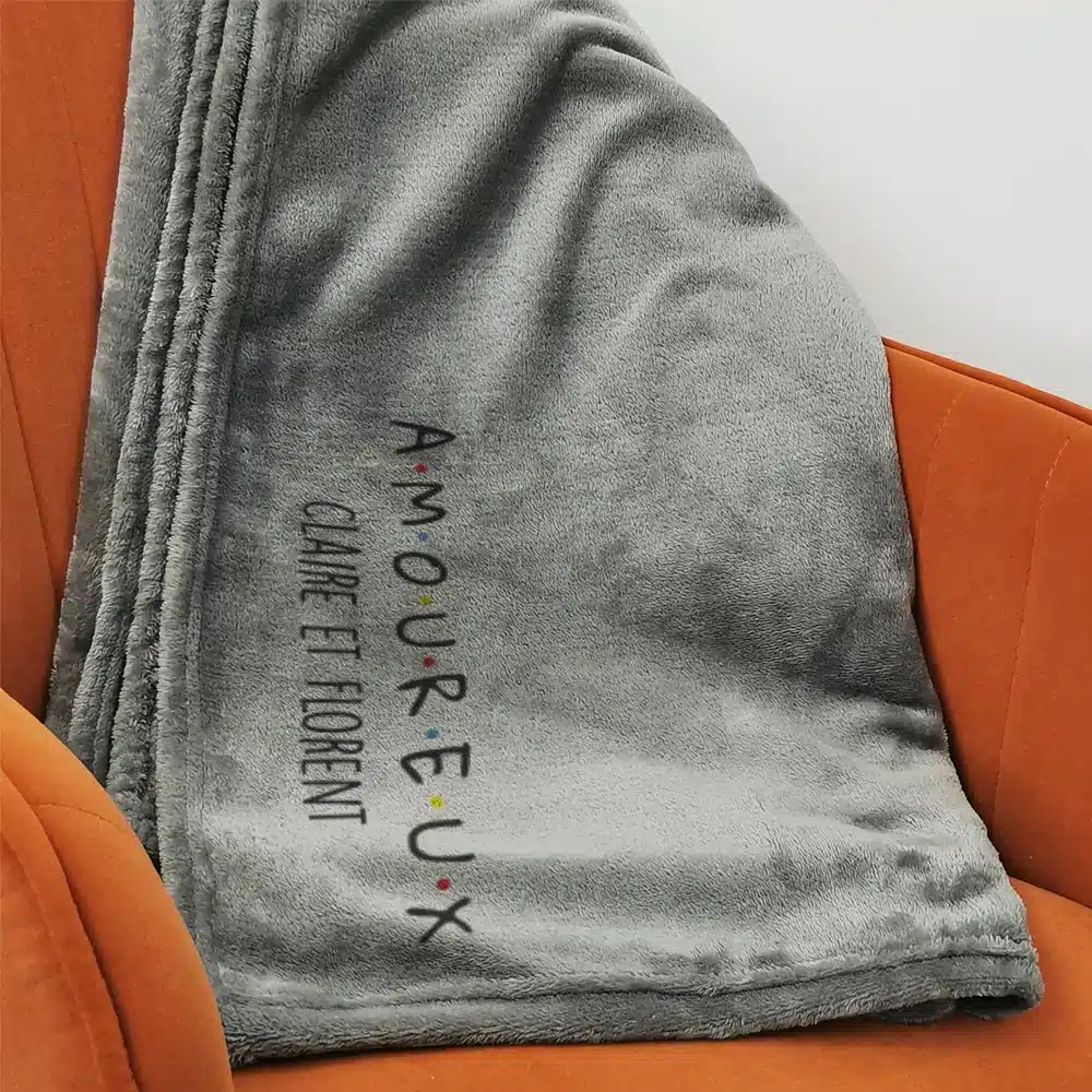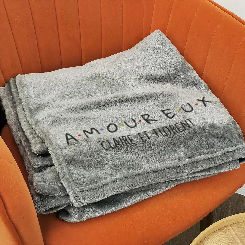 Pour être bien au chaud chez soi, rien ne vaut ce plaid gris tout doux ! Avec sa personnalisation au design avec A.M.O.U.R.E.U.X et les 2 prénoms, vous ferez forcément plaisir. Devant la télé ou tout simplement sur son fauteuil, la personne à qui vous l’offrez aura le sentiment d’être sur un petit nuage grâce à sa douceur. C’est aussi un cadeau idéal pour tous les frileux(ses) et les amoureux !