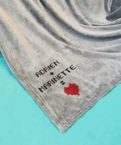 Plaid doux gris personnalisé Pixel Coeur – 125×150 cm – Cadeau saint valentin
